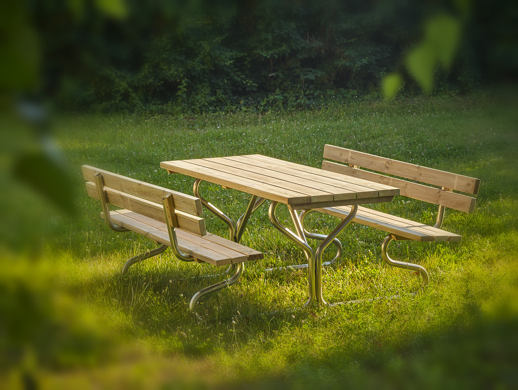 Die Bänke sind solide verarbeitet und mit verdeckten Schraubverbindungen hergestellt.